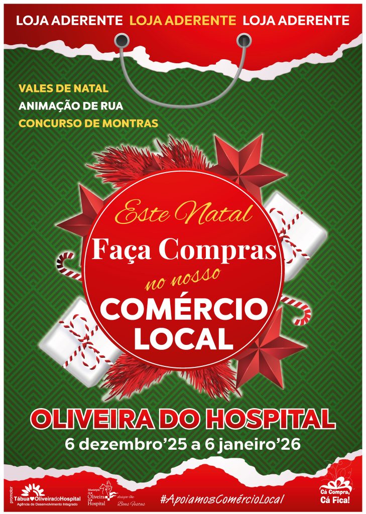 Arrancou a campanha de estímulo às compras no comércio local de Oliveira do Hospital dinamizada pela ADI – Agência para o Desenvolvimento Integrado de Tábua e Oliveira do Hospital. A campanha “Este Natal faça compras no nosso Comércio Local” decorre até 6 de janeiro de 2026 e é desenvolvida em parceria com o Município de Oliveira do Hospital.
